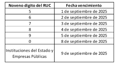 El Servicio de Rentas Internas mediante la Resolución N.ºNAC-DGERCGC25-00000016, emitida el 17 de julio de 2025, ha dispuesto una ampliación excepcional de los plazos para la presentación de declaraciones y anexos tributarios cuya fecha de vencimiento original era el 12 y 14 de julio de 2025.